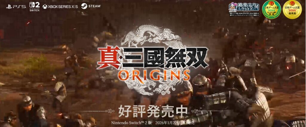 ポイント: 圧倒的な兵士数による軍勢感と、味方への戦術指示による奥深い駆け引き。発売日と同日に大型DLC「夢幻の四英傑」も配信されます。