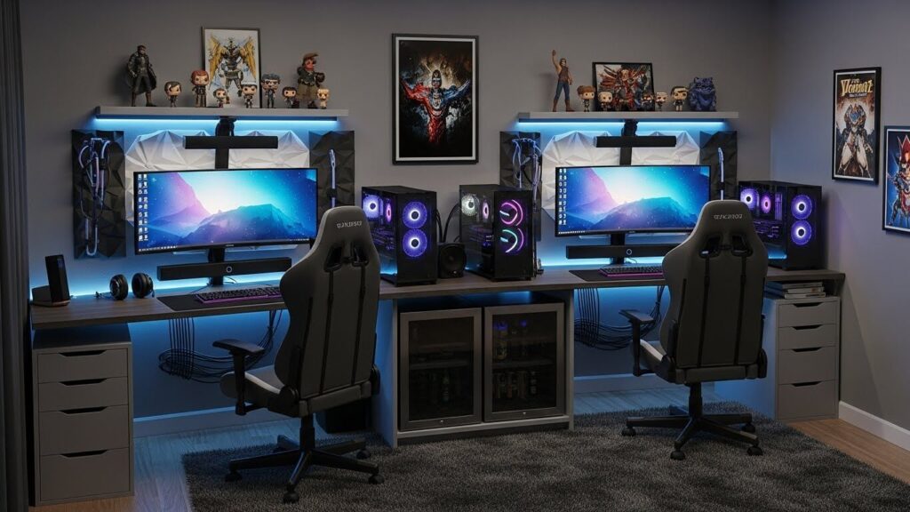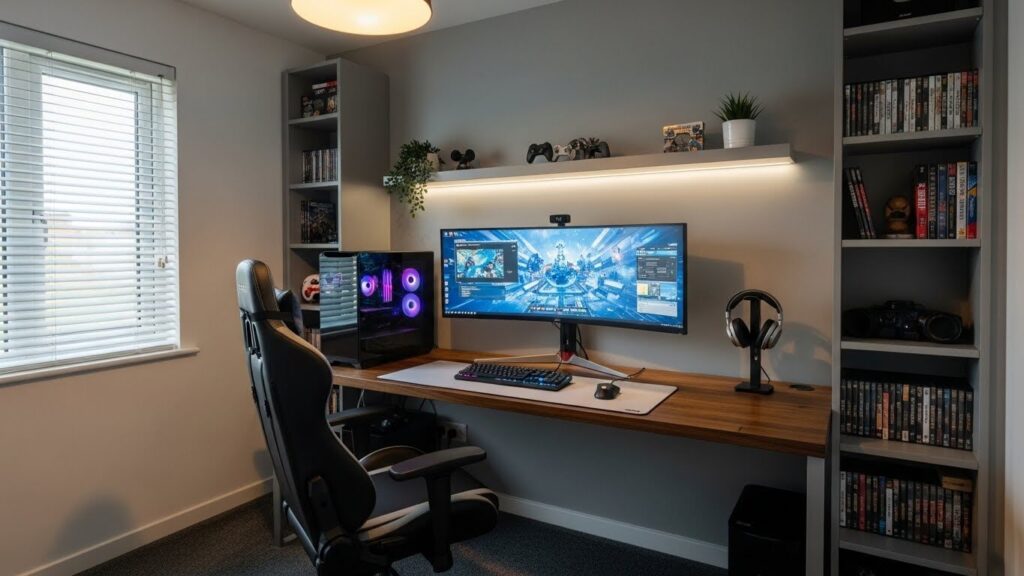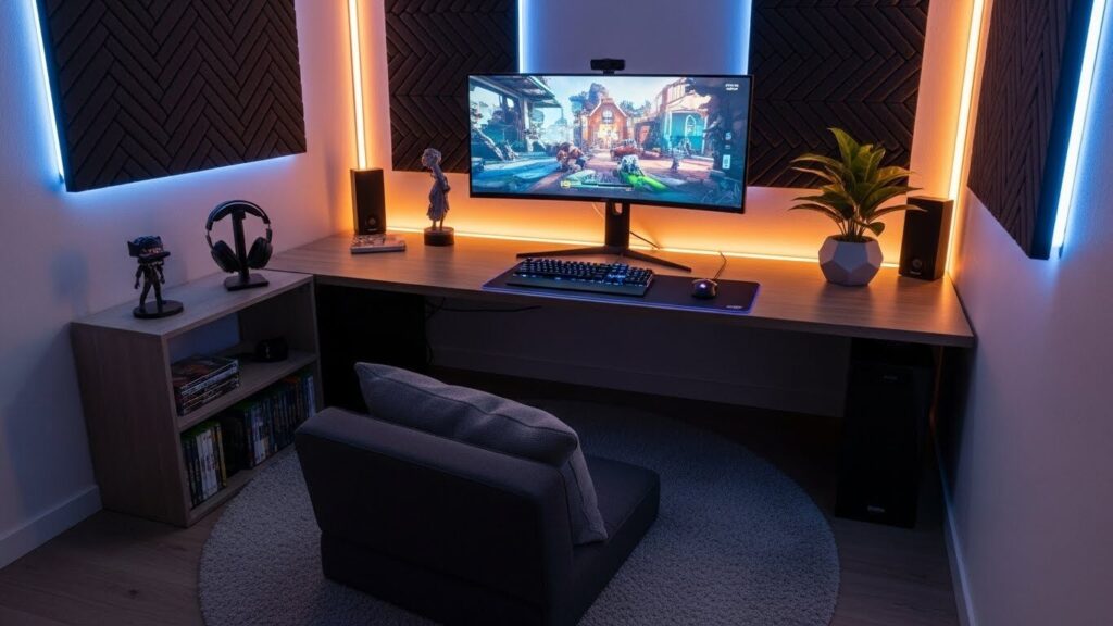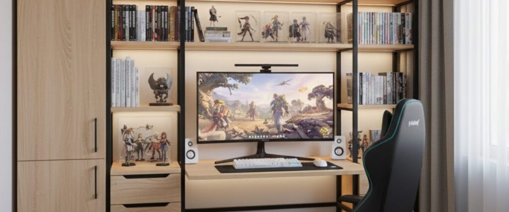 - 壁面収納: デスクの横や背面の壁に、ヘッドセットやコントローラーを掛ける「見せる収納」を作りましょう。