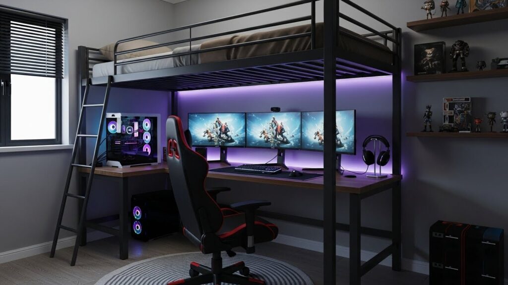 | ベッド下のデスク空間に没入感があり、ゲームに集中しやすい | 部屋全体に圧迫感が出やすい |