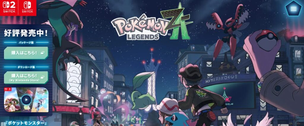 『Pokémon LEGENDS』シリーズの第2弾。カロス地方の「ミアレシティ」を舞台に、都市再開発構想を巡る新たな冒険が描かれます。