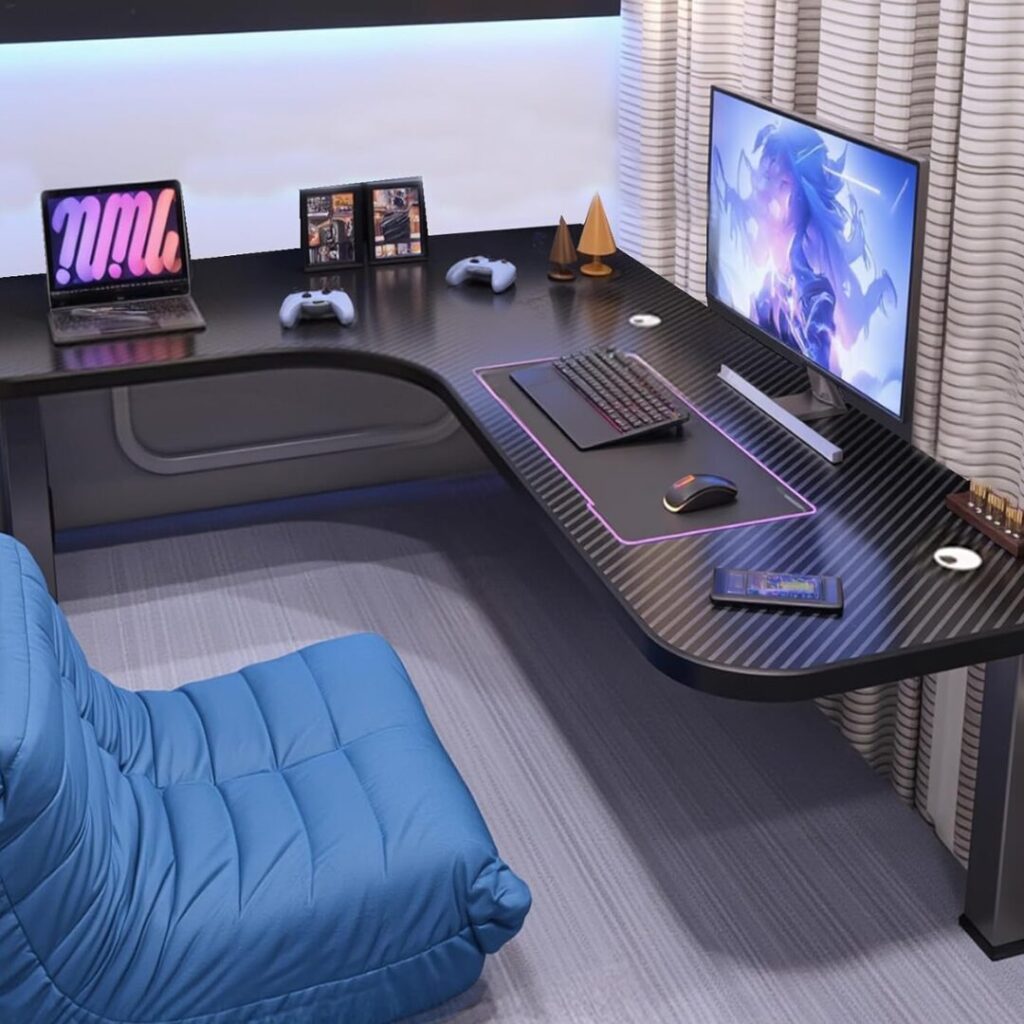 高さ約40cmと座椅子に最適な設計で、カーボン調の天板はキズや汚れに強くお手入れも簡単。和室のコーナーを活かして、低コストで本格的なゲーム基地を作りたい方に最適です。